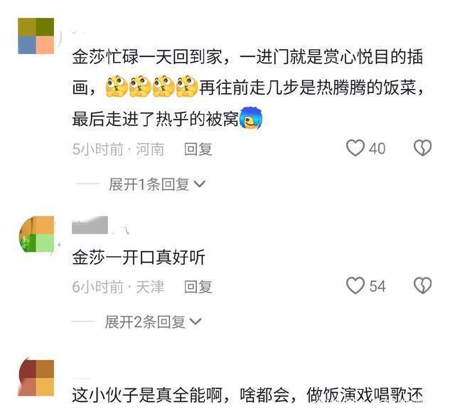 重点是孙丞潇也接住了,不仅几乎每天连更做饭视频,还闯出了属于自己的烹饪赛道。 在他登上美食类综艺以后,网友们更是开启了自嘲调侃:以前质疑金莎,这下算是懂金莎了,工作回来有弟弟做饭,饭菜赏心悦目,人也阳光帅气,谁不羡慕。