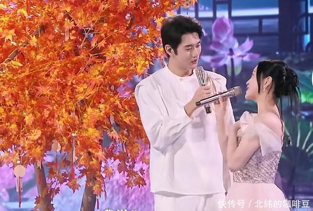 这不,芒果台趁热打铁,直接把这对热恋情侣请上台。 两个人自然的互动和深情的眼神,掀起了一大波话题,晚会热度又加了一把火。